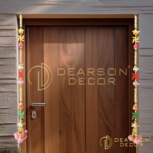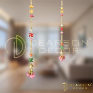 Dearson decor hanging decoration round and square golden ring with wooden parrot Entry Door, Pooja, Diwali and Festival Decoration. 1 pair, inch-1087V