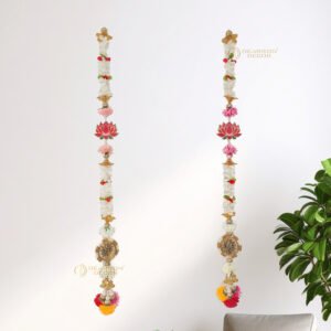 Dearson decor Hanging Decoration, multi colour flower, and pearl ring pink flower, Entry door decoration, pooja decoration and festival decoration 1 pair, inch-1101AC