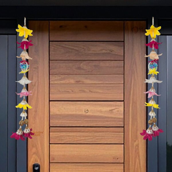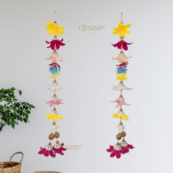 Dearson decor Hanging Decoration, multi colour flower, and pearl ring pink flower, Entry door decoration, pooja decoration and festival decoration 1 pair, inch-1101AC