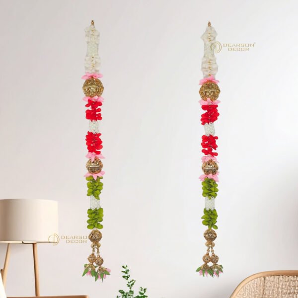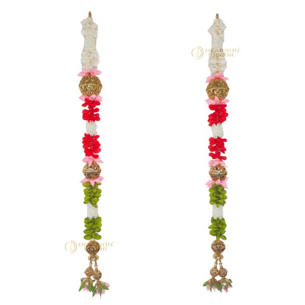 Be the first to review “Dearson decor hanging with latkan, mogra and pink flower and golden material Entry Door, Pooja, Diwali and Festival Decoration. 1 pair, inch-1086V”