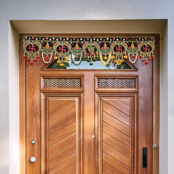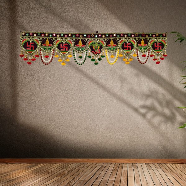 Dearson Decor Traditional Om Pattern Door Hanging Toran | Handmade 3 Feet Bandarwal with Multi Zula Pearl Beads | Cotton Works Lightweight Decoration DD/A8